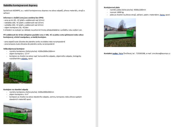 Úvod > Život v obci > Aktuality z obce > NABÍDKA KONTEJNEROVÉ DOPRAVY - ASOMPO, a.s.