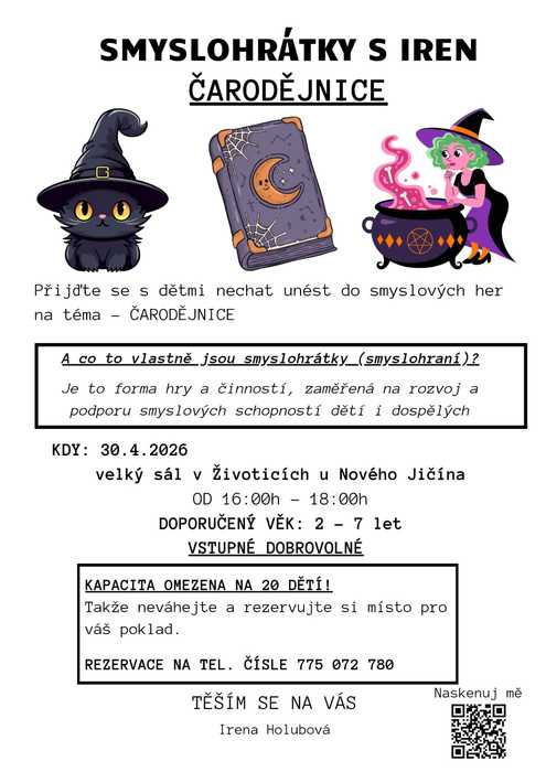 Úvod > Život v obci > Aktuality z obce > SMYSLOHRÁTKY S IREN - ČARODĚJNICE 30.4.2026